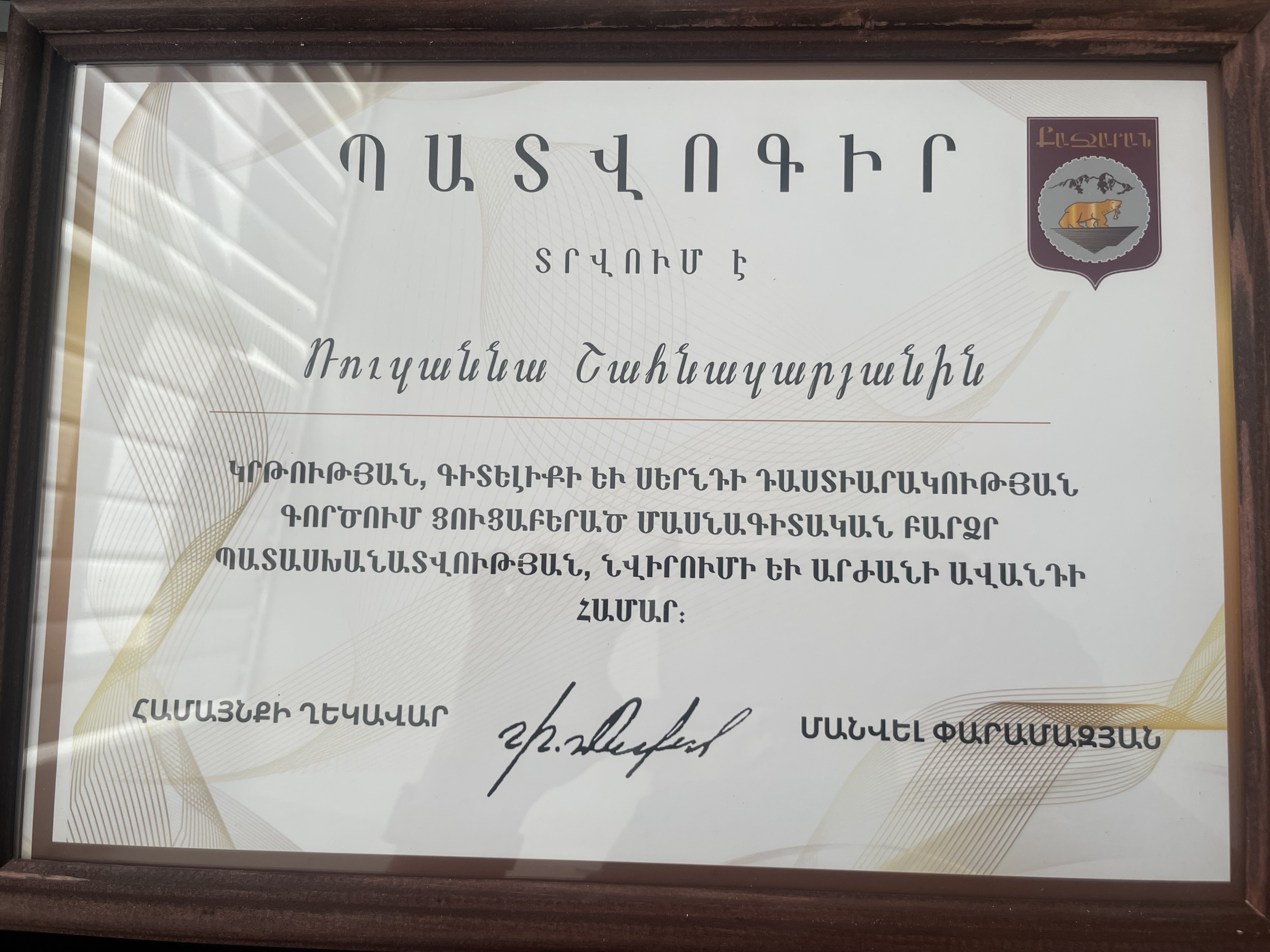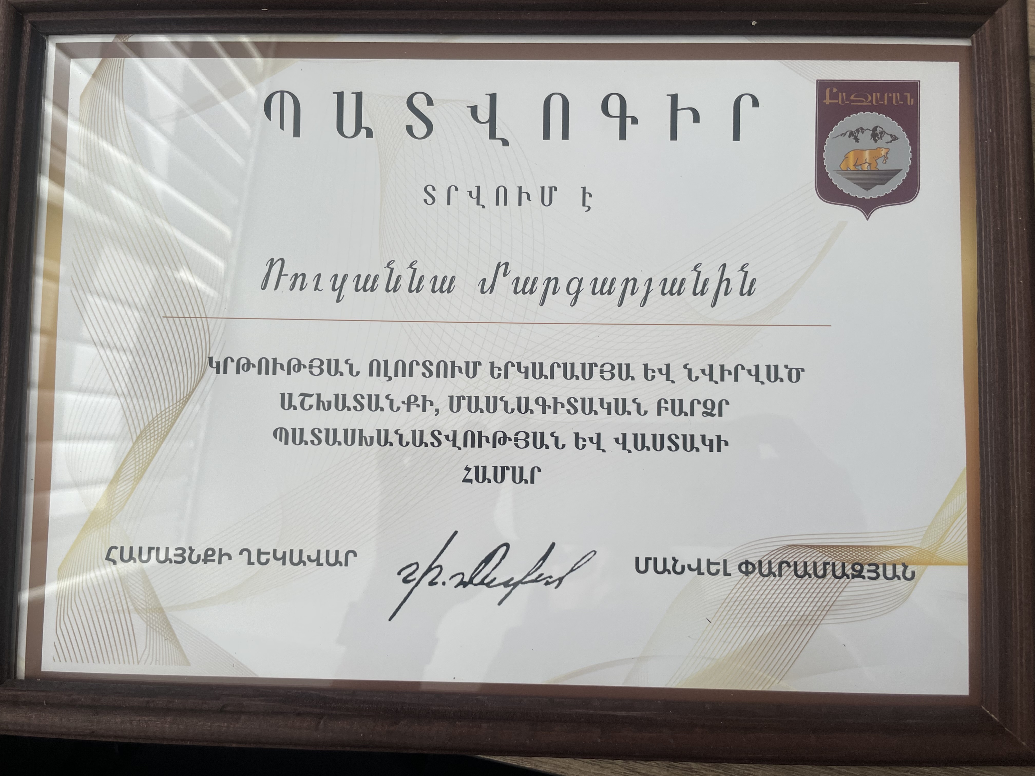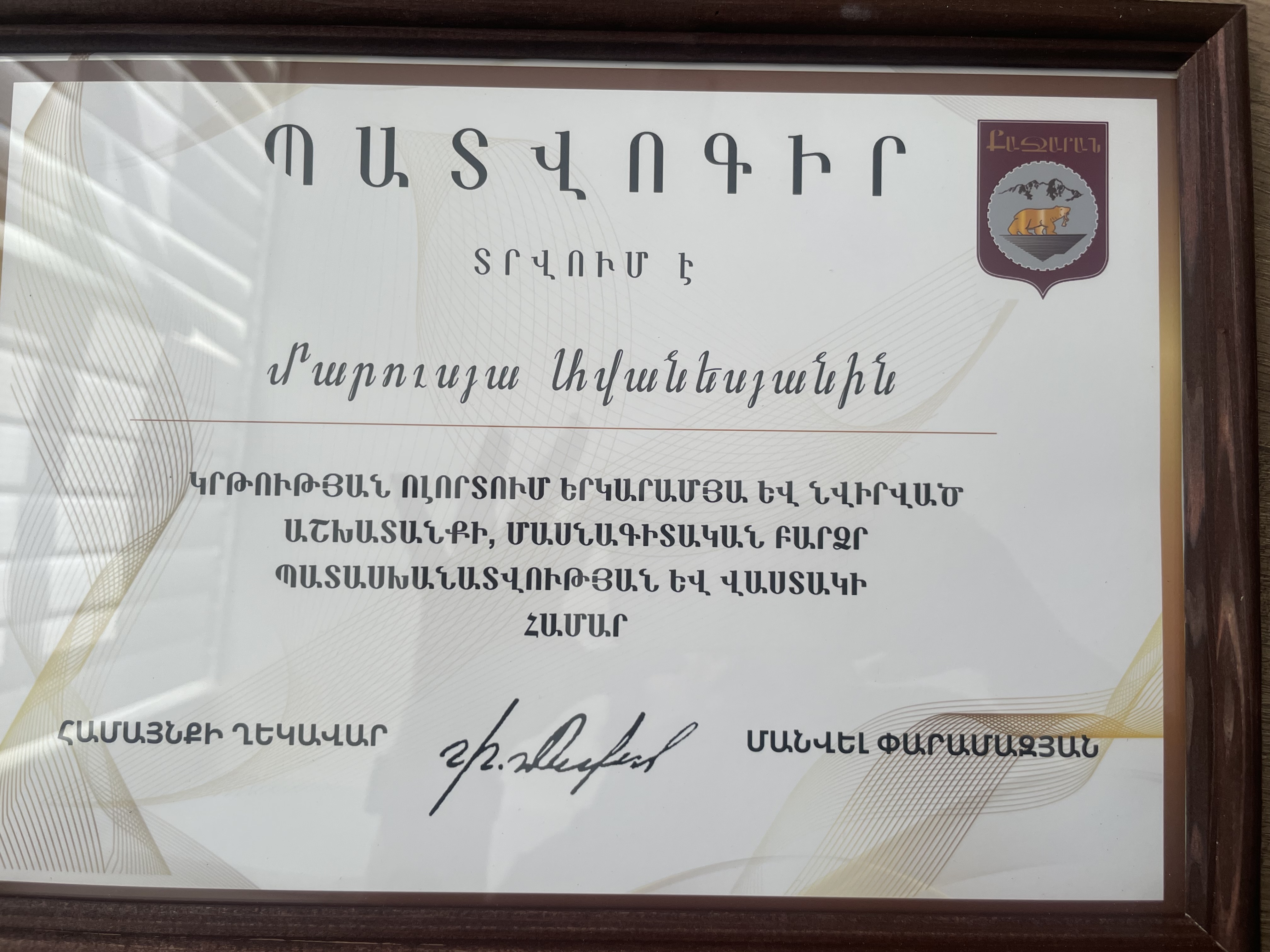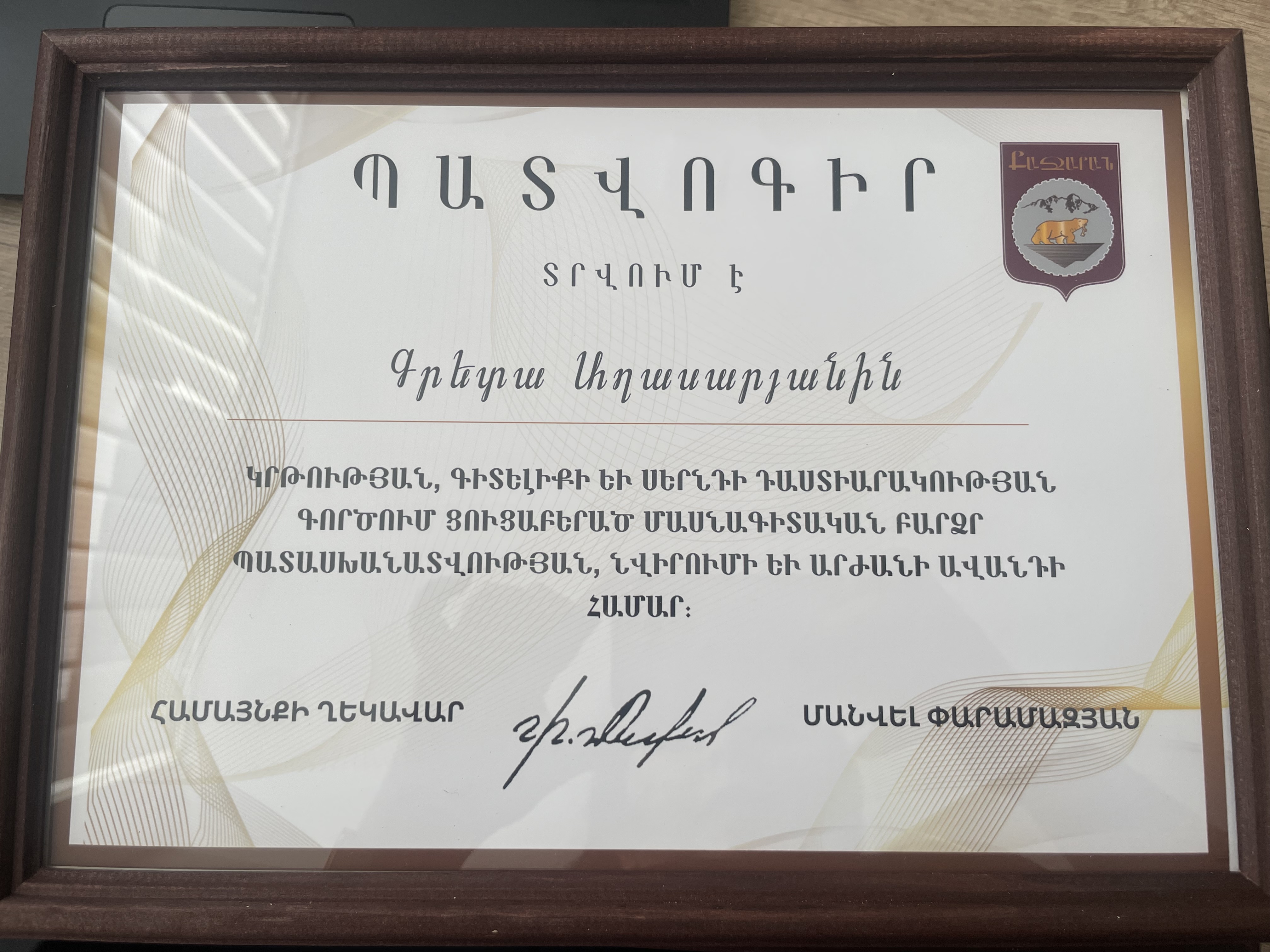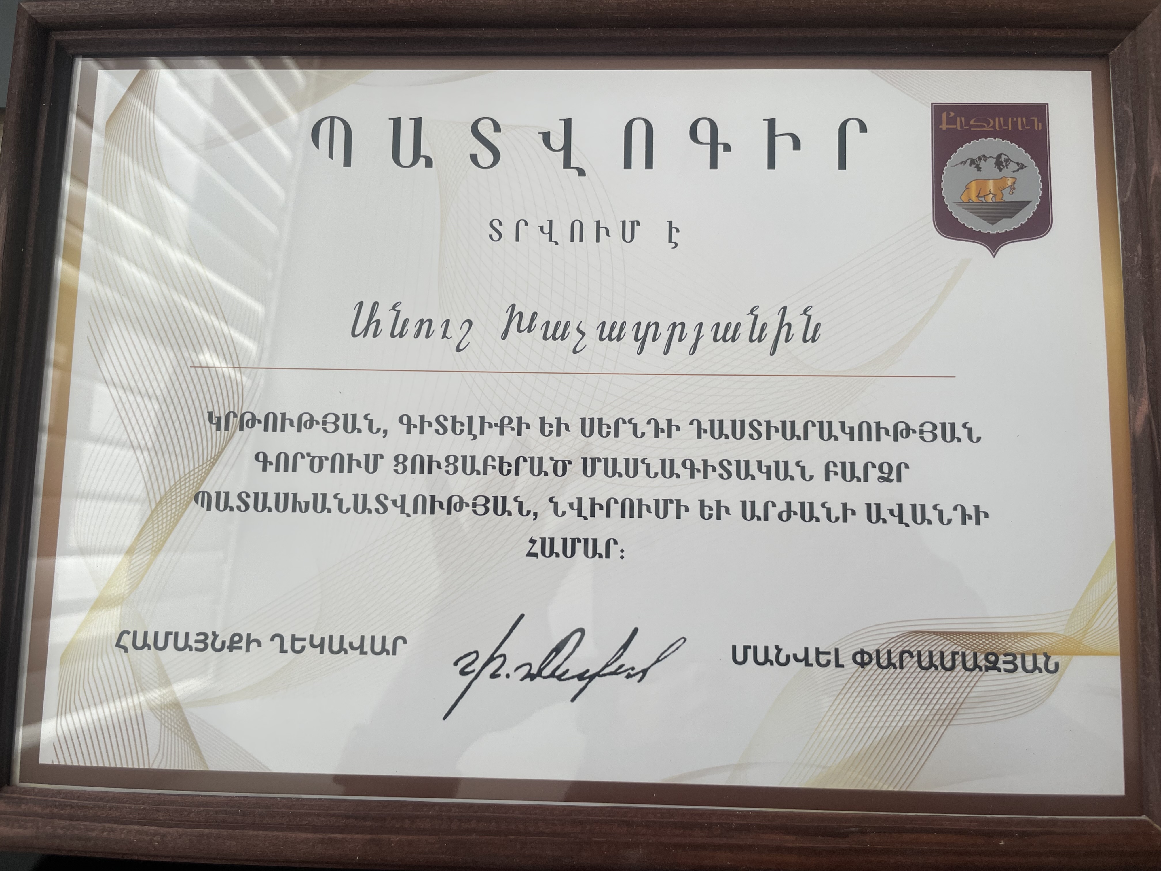 Մրցանակներ/շնորհակալագրեր