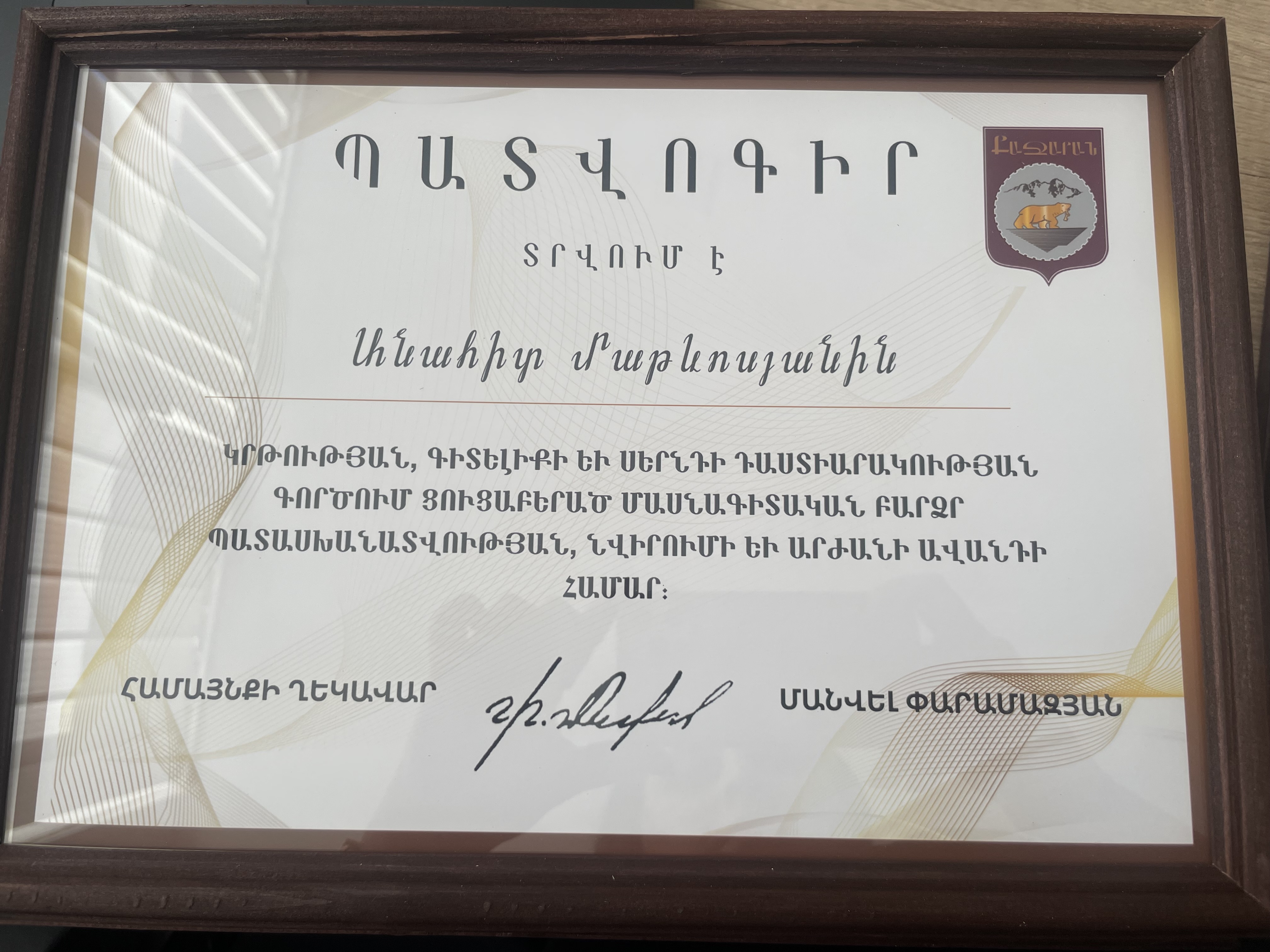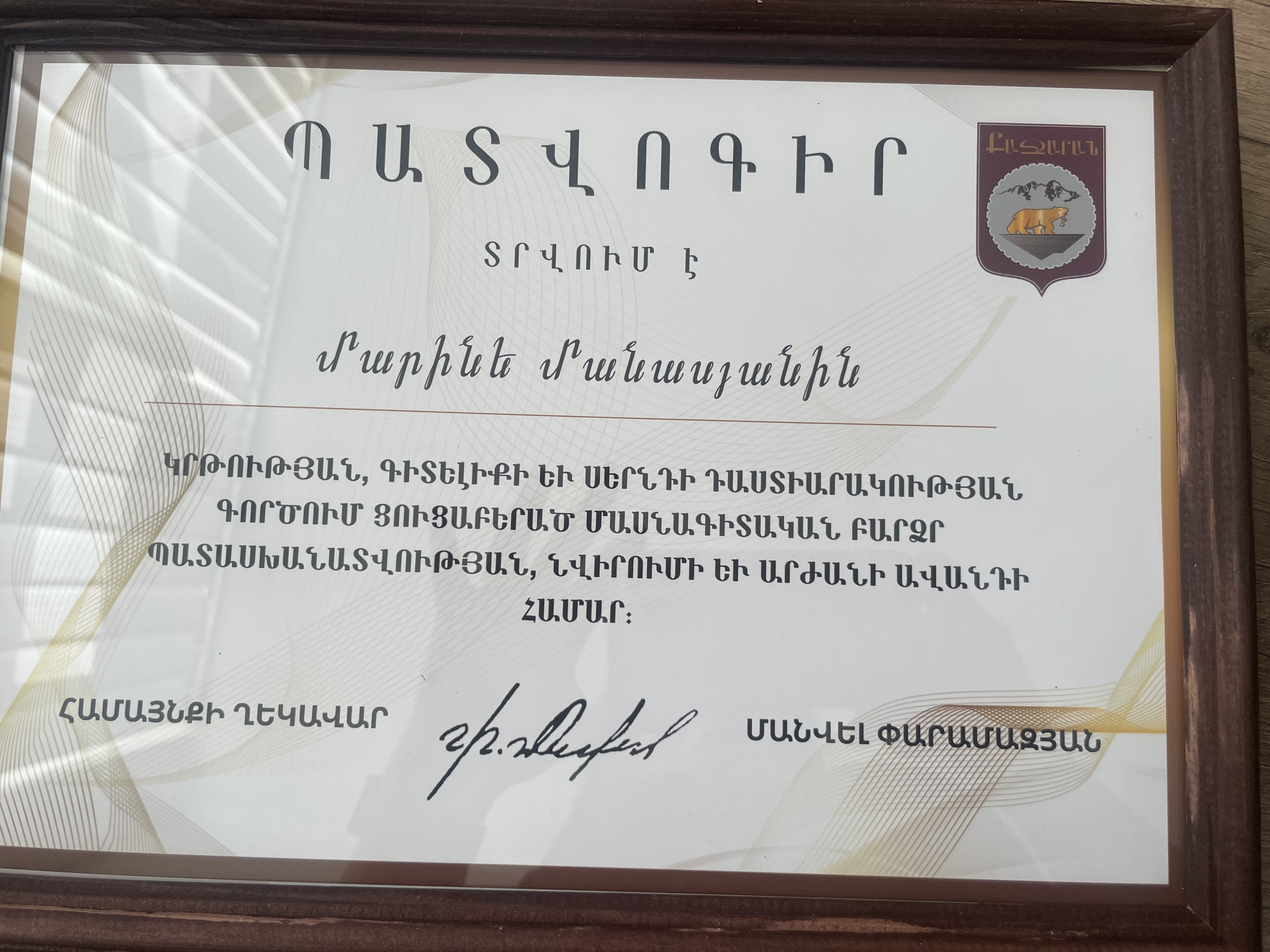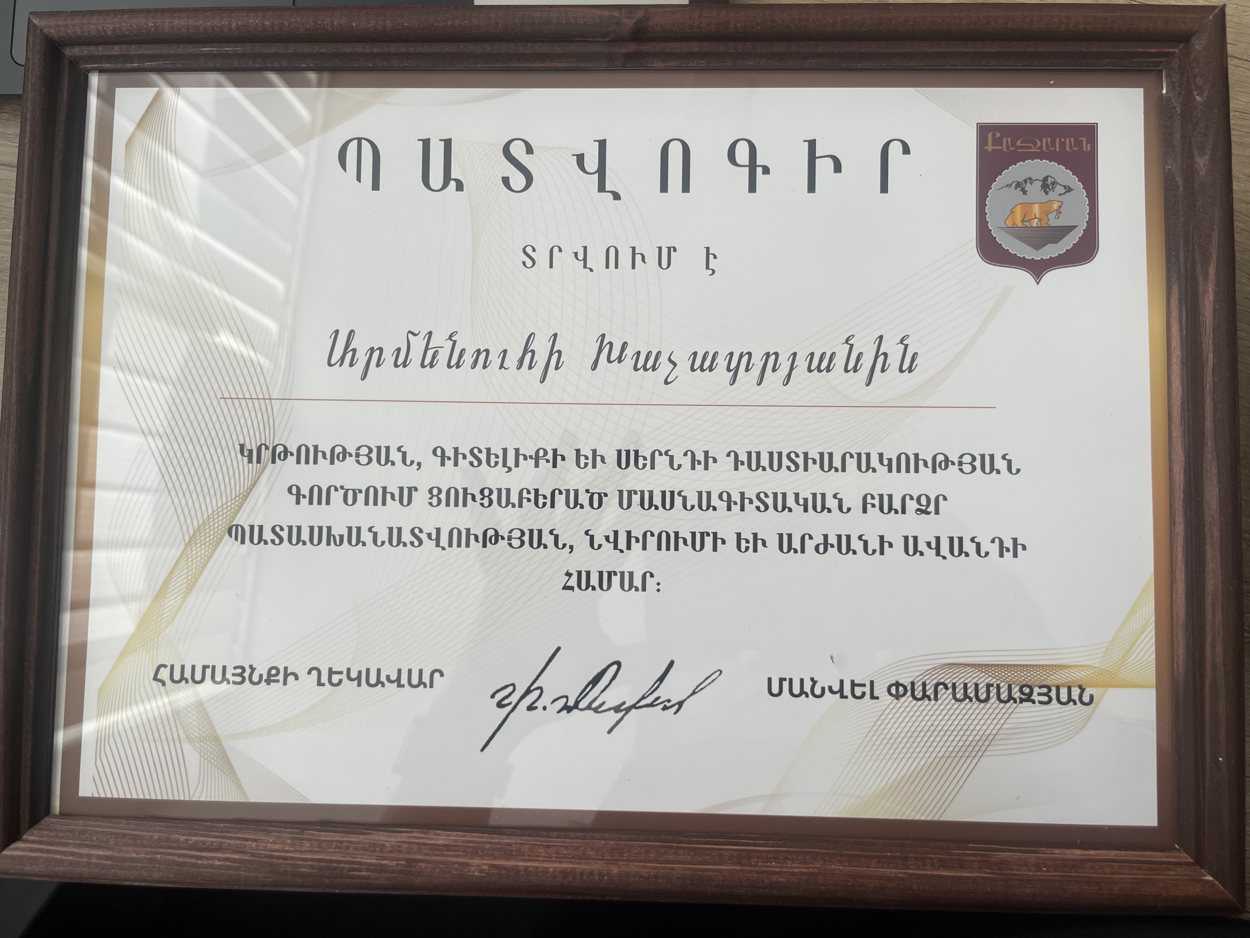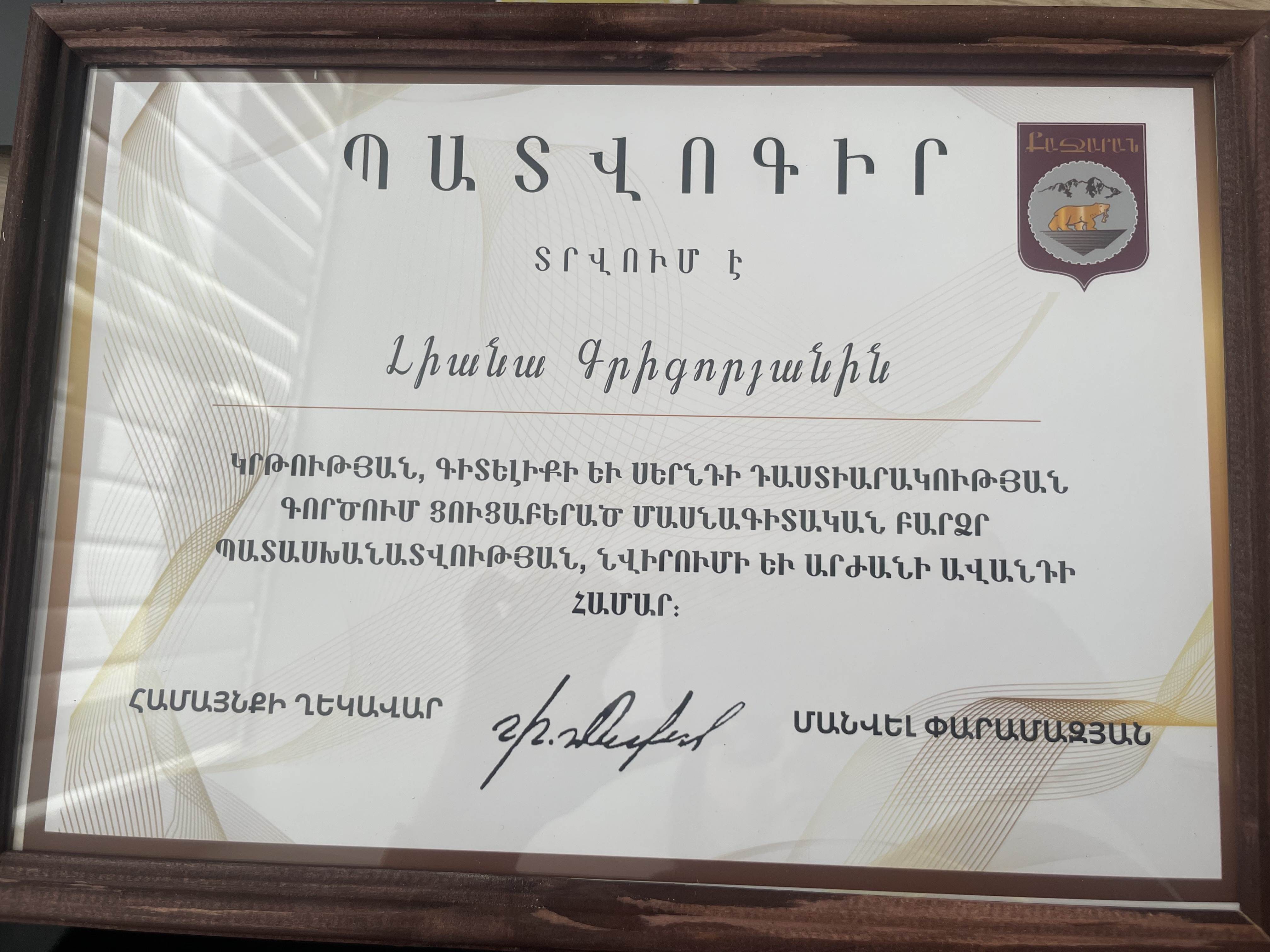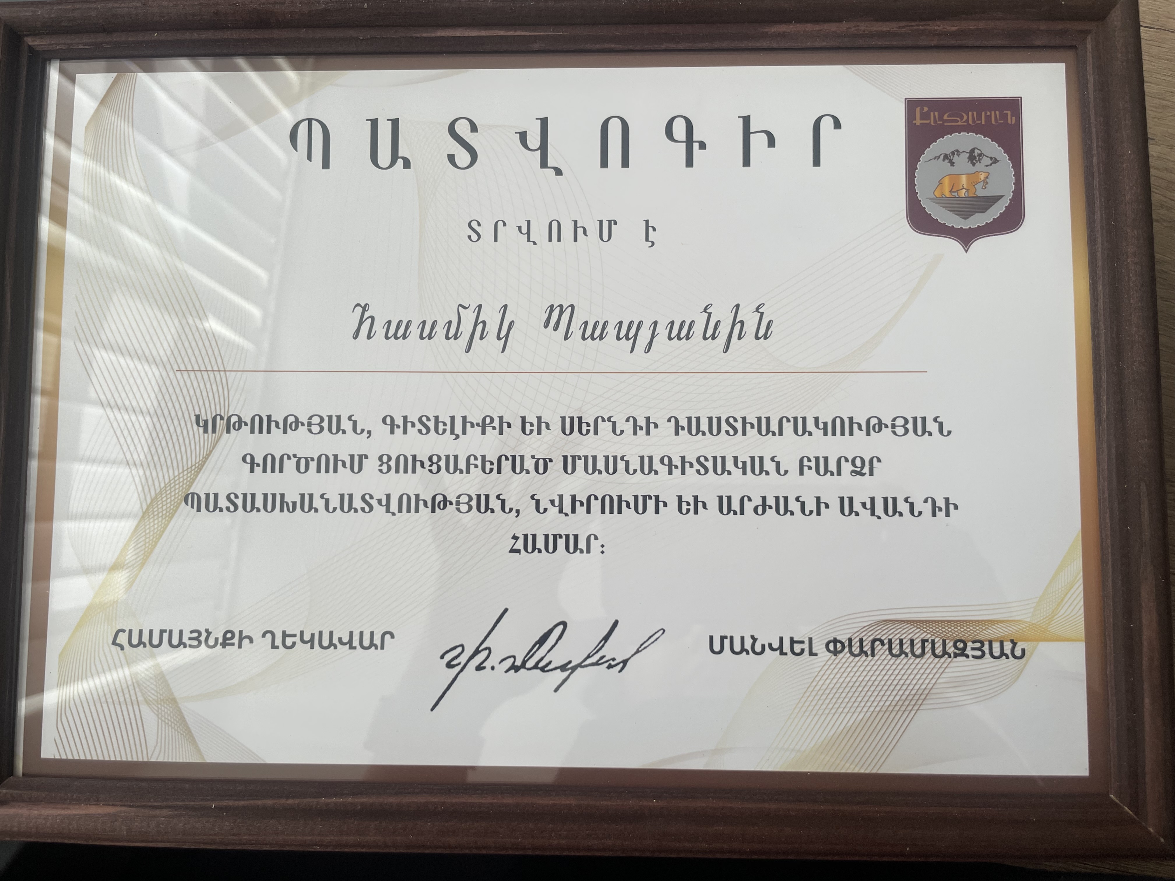 Մրցանակներ/շնորհակալագրեր